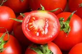 czerwone pomidory, ułożone na stoisku rynku