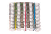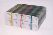mnóstwo białych tabletek w opakowaniu. srebrny opakowania tabletek