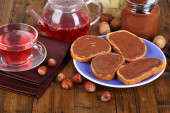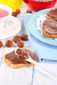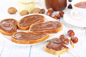 Chleb z orzechami laskowymi słodkiej czekolady rozłożone na stole