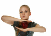 portret blondynka na białym tle