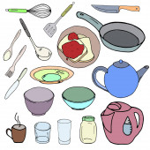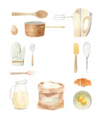 Zestaw naczyń kuchennych do piekarni i produktów na białym tle
