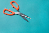 Colorful scissors on the color paper background