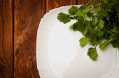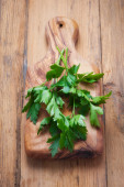pęczek pietruszki na stary taca na drewnianym stołem