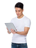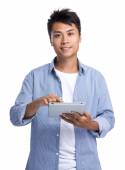 Zdjęcie "Azjata patrzący na tabletkę" może być wykorzystywane do celów osobistych i komercyjnych zgodnie z warunkami zakupionej licencji Royalty-free. Obraz jest dostępny do pobrania w jakości wysokiej rozdzielczości do 5760x3840.