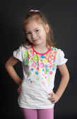 Mała dziewczynka, modelowanie włosów łuk i dopasowanie koszuli