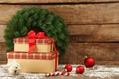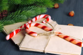 Boże Narodzenie candy laski i listów do santa, na tle drewniane kolor