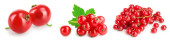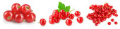 Jagody porzeczki czerwonej z liściem wyizolowanym na białym tle. Zestaw lub kolekcja
