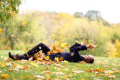 Zdjęcie "kobieta siedzi na dywanie liści w parku jesień" może być wykorzystywane do celów osobistych i komercyjnych zgodnie z warunkami zakupionej licencji Royalty-free. Obraz jest dostępny do pobrania w jakości wysokiej rozdzielczości do 5760x3840.
