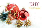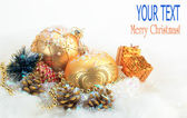 Boże Narodzenie szyszki i niebieski Brokat na białym tle