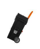 jeden duży czarny zestaw narzędzi do przenoszenia narzędzi budowlanych na kołach, na białym tle, izolowane