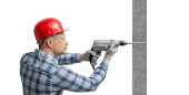 Zdjęcie "szczęśliwy pracownik złota rączka (Jack wszystkich zawodów) lub budowniczy z narzędziami budowlanymi, stoisko i uśmiech, na szarym tle betonowej ściany. Koncepcja usług remontowych i budowlanych" może być wykorzystywane do celów osobistych i komercyjnych zgodnie z warunkami zakupionej licencji Royalty-free. Obraz jest dostępny do pobrania w jakości wysokiej rozdzielczości do 5760x3840.