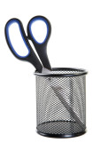 Colorful scissors on the color paper background