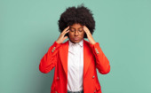 uczucie stresu i niepokoju, depresji i frustracji bólem głowy, podnosząc obie ręce do góry