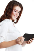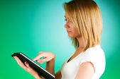 Zdjęcie "dziewczyna z komputera przenośnego typu tablet" może być wykorzystywane do celów osobistych i komercyjnych zgodnie z warunkami zakupionej licencji Royalty-free. Obraz jest dostępny do pobrania w jakości wysokiej rozdzielczości do 5760x3840.