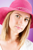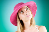 młoda dziewczyna z plaży kapelusz przeciwko tło gradientowe