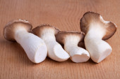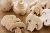 pyszne agraicus surowe pieczarki na drewniane tła