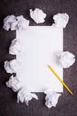 arkusz białego papieru z zmięty papier i ołówek na stół szczegół