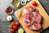 surowe mięso stek z zioła przyprawy, na tle drewniane