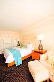 Podwójne łóżko w nowoczesnym pokoju wewnętrznym
