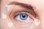lekarz pracuje wirtualny interfejs badając ludzkie oko