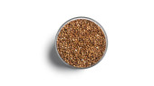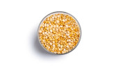 Płatki prosa w szklanym słoiku wyizolowanym na białym tle. Wysokiej jakości zdjęcie