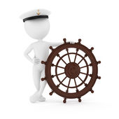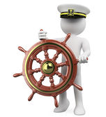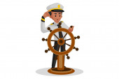 ilustracja kreskówka kapitana statku na czele. na białym tle.