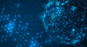 Cyfrowa ilustracja globu nad przetwarzaniem danych, statystyki ukazujące się w tle.