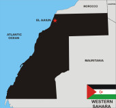 Politival map of Western Sahara country with neighbours and national flag