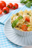 pyszny makaron z pomidorami na tabliczce na stół szczegół