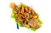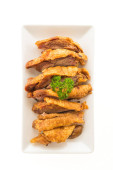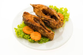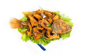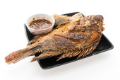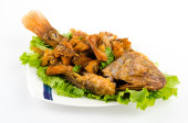 tajskie jedzenie smażone ryby w białe płytki na białym tle