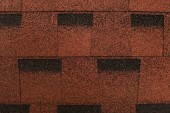 widok z góry brązowe, dachówki bitumiczne z geometrycznym wzorem
