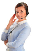 piękna kobieta pracuje w call-center wskazując na nas