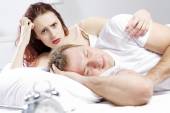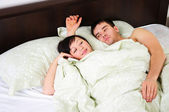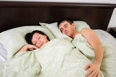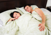 Młoda para właśnie obudziła się w łóżku razem wczesnym rankiem.