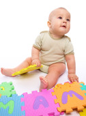 mały chłopiec z budynek cegieł