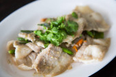 mieszać smażone krewetki i kurczaka z sosem ostryg