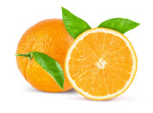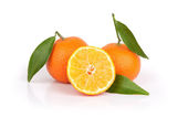 świeżych owoców mandarynki z cięcia i zielonych liści