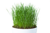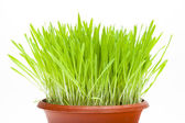 Zielona trawa w kubek na białym tle. surową concep