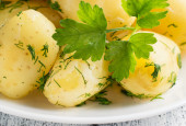 świeżych organicznych z ziemniakami oleju i koperkiem