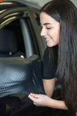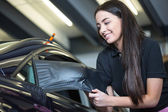pracownik do czyszczenia samochodu z tkaniny i zraszacz butelkowy