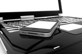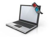 jeden czerwone strzałki wyjść przez monitor laptopa