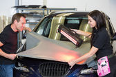 samochód opakowania za pomocą ściągaczki do wyprostować folia winylowa