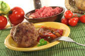 Zdjęcie "Pulpety smażone z ratatouille i świeże ziemniaki" może być wykorzystywane do celów osobistych i komercyjnych zgodnie z warunkami zakupionej licencji Royalty-free. Obraz jest dostępny do pobrania w jakości wysokiej rozdzielczości do 5760x3840.