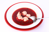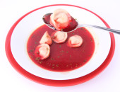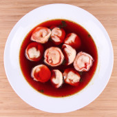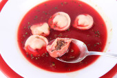 Tradycyjne polskie danie Wigilia: Wyczyść barszcz z uszka (grzyb wypełnione niby pierogi)