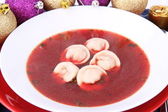 Tradycyjne polskie danie Wigilia: Wyczyść barszcz z uszka (grzyb wypełnione niby pierogi)