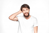 portret przystojnego mężczyzny krzaczasta broda brunetka model