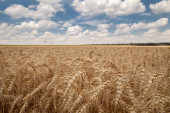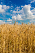 piękne pole pszenicy dojrzałe pod błękitne niebo pochmurne