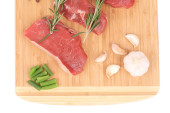 surowe steki na deski do krojenia.