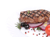 Zdjęcie "duży, soczysty stek z grilla z zielonych." może być wykorzystywane do celów osobistych i komercyjnych zgodnie z warunkami zakupionej licencji Royalty-free. Obraz jest dostępny do pobrania w jakości wysokiej rozdzielczości do 5760x3840.