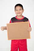 Portret azjatyckiego dziecka z pustą płytką do dodania tekstu .