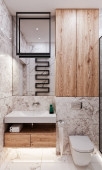 nowoczesny wystrój łazienki z marmuru płytek i drewna